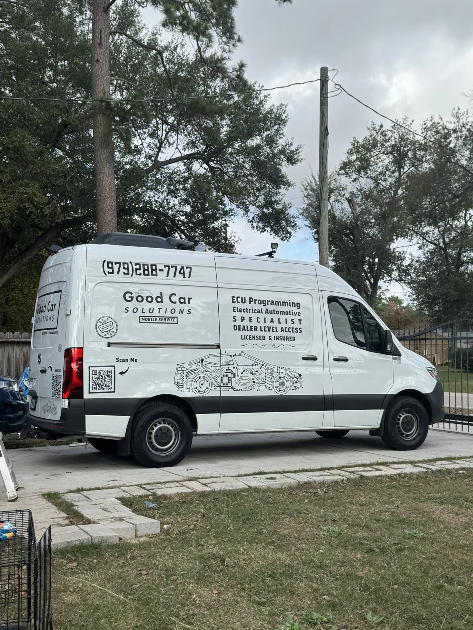 Good Car Solutions brings a fully equipped mobile diagnostics lab to your location in Houston and surrounding areas. We handle ECU programming, module cloning, electrical diagnostics, and software corrections — on-site, while you keep your bay turning.
